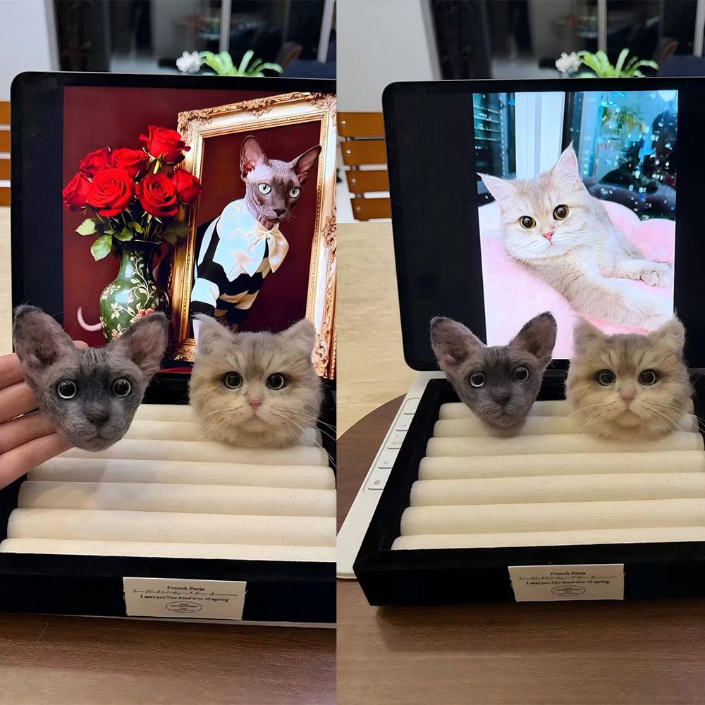 Nach drei Wochen Wartezeit kam das Paket endlich an. Als ich es öffnete, war ich sprachlos: Da waren Nero und Mila, winzig und perfekt nachgebildet, bereit als Brosche an unserem Hochzeitsanzug und -kleid zu hängen. Die Details sind unglaublich – man sieht fast den sanften Glanz von Milas Fell und die typische Miene von Nero.