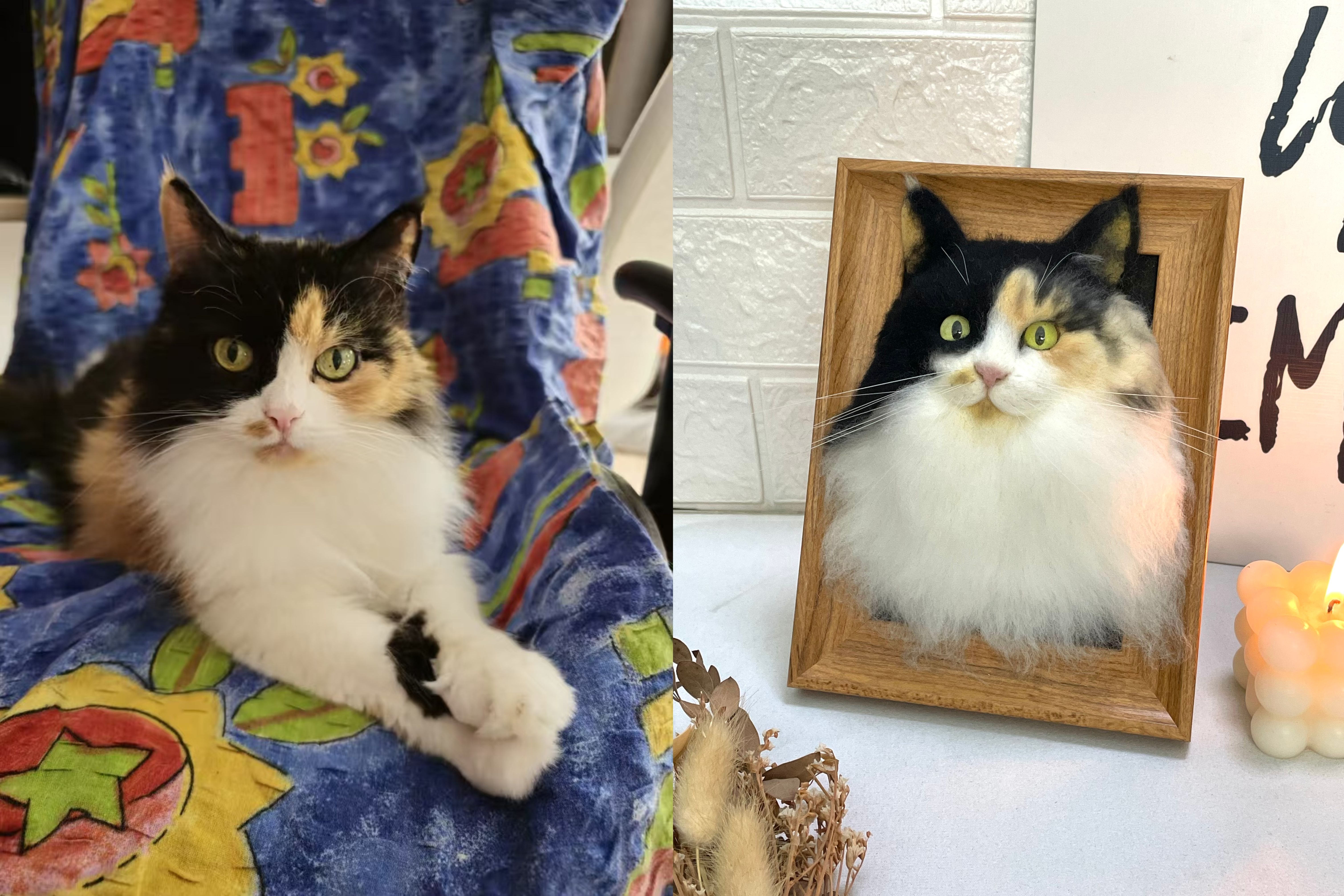 Kundengeschichte: Überraschungsgeschenk - Individuelles Wollfilz-Portrait Katze im Rahmen von DIYTREE