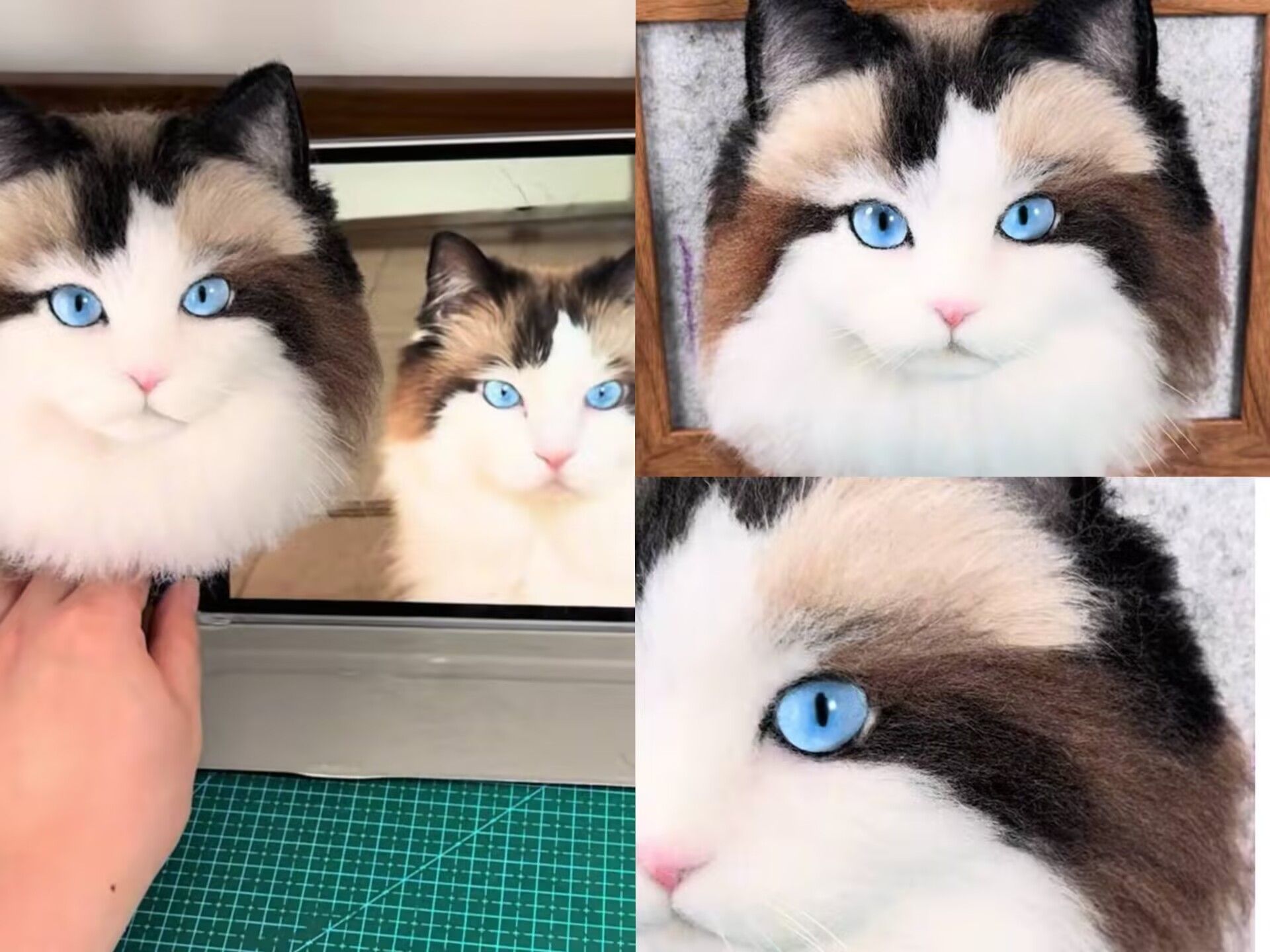Nach der Bestellung und Bezahlung wartete ich gespannt. 15 Tage lang – es fühlte sich wie eine Ewigkeit an. Aber dann kam das Paket. Ich öffnete es mit zitternden Händen, und da war sie: Minka. Genau so, wie ich sie in Erinnerung habe. Die hellblauen Augen, die braunen Flecken auf ihrem Gesicht, das weiche, flauschige Fell – alles war bis ins kleinste Detail nachgebildet. Sie saß in einem schönen Holzrahmen, als würde sie mich direkt anblicken.