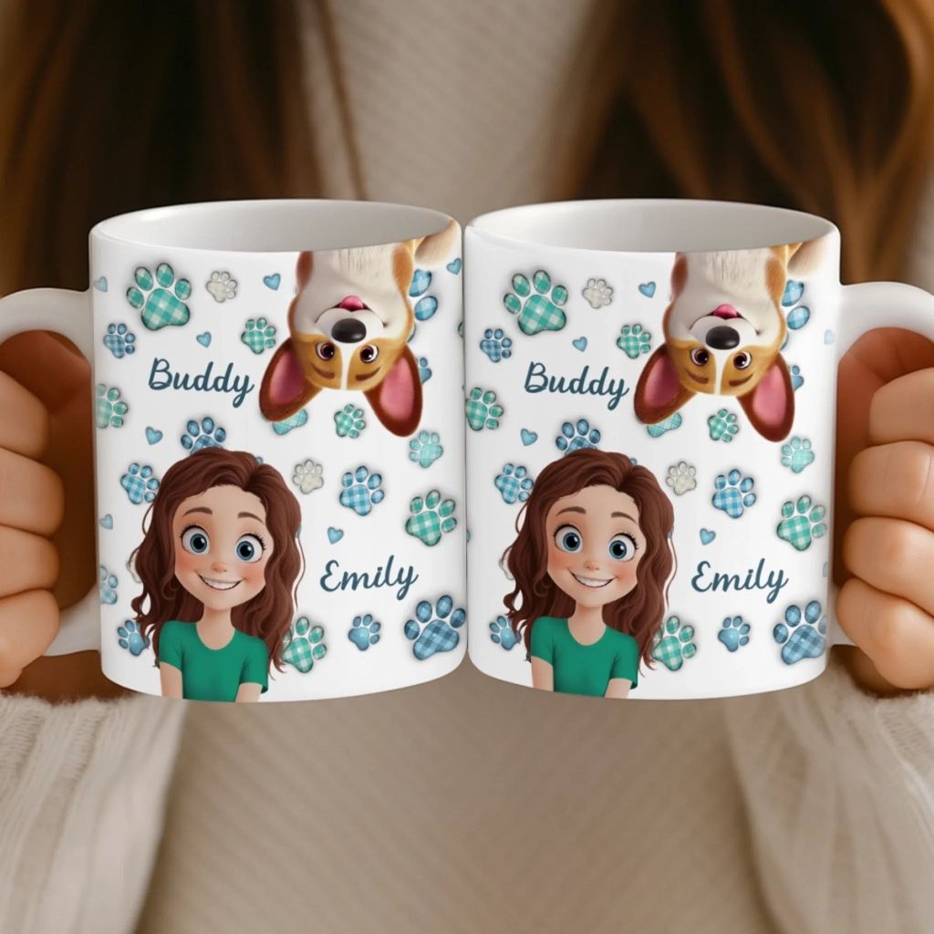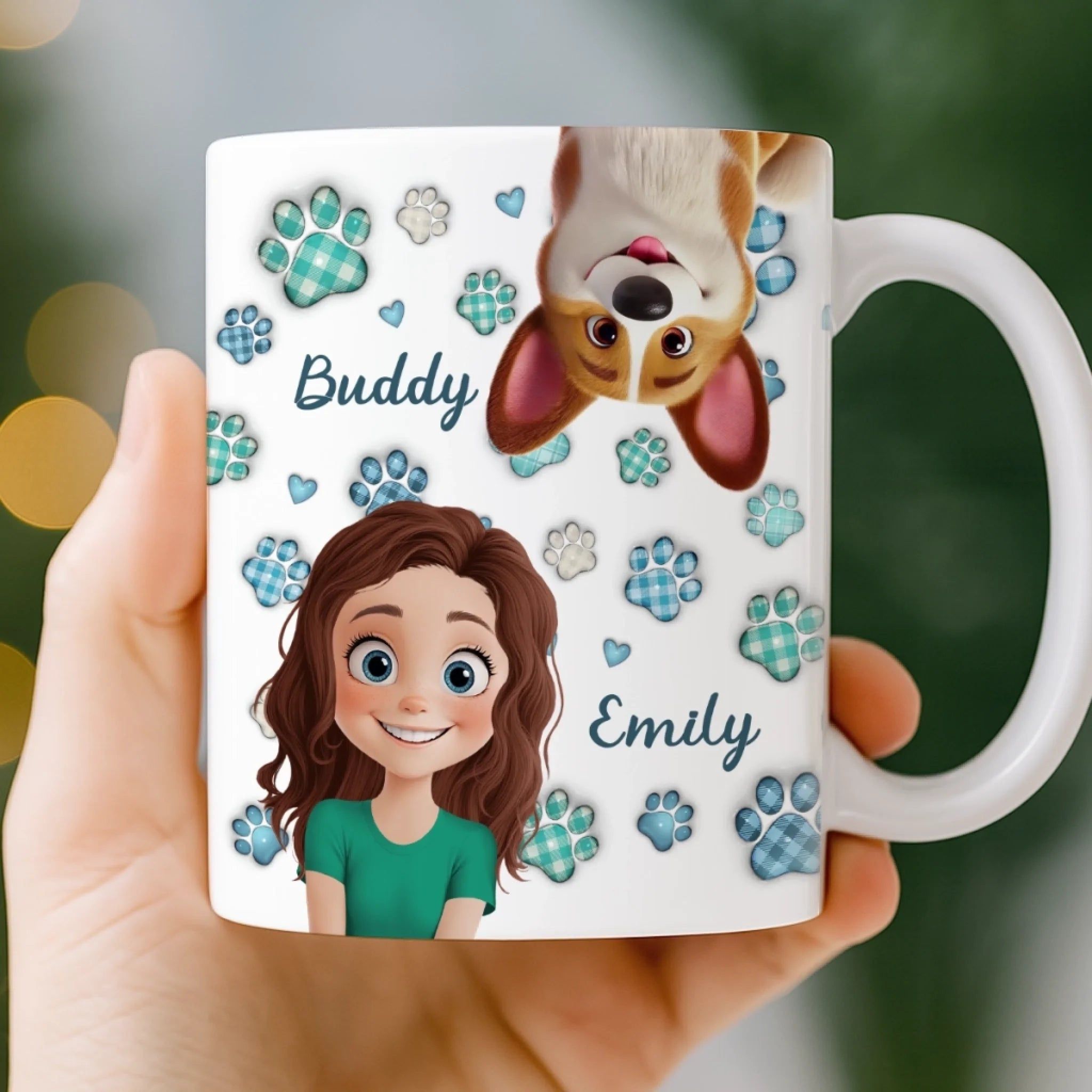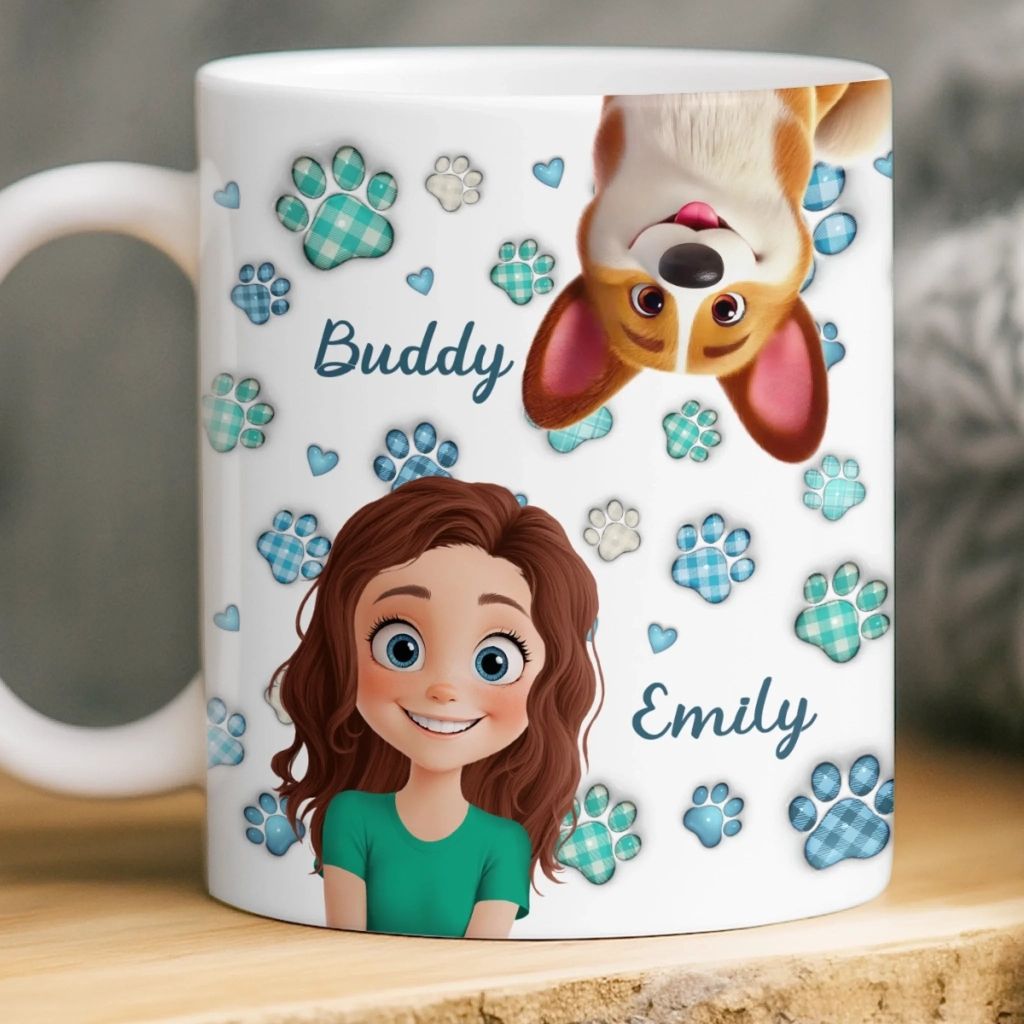 Individuell bedruckte Tasse mit 2D-Aufblaseffekt – Personalisierte Geburtstagsgeschenke für Hunde- und Katzenliebhaber, Hundeeltern und Katzenbesitzer – Pfoten machen das Leben bunt