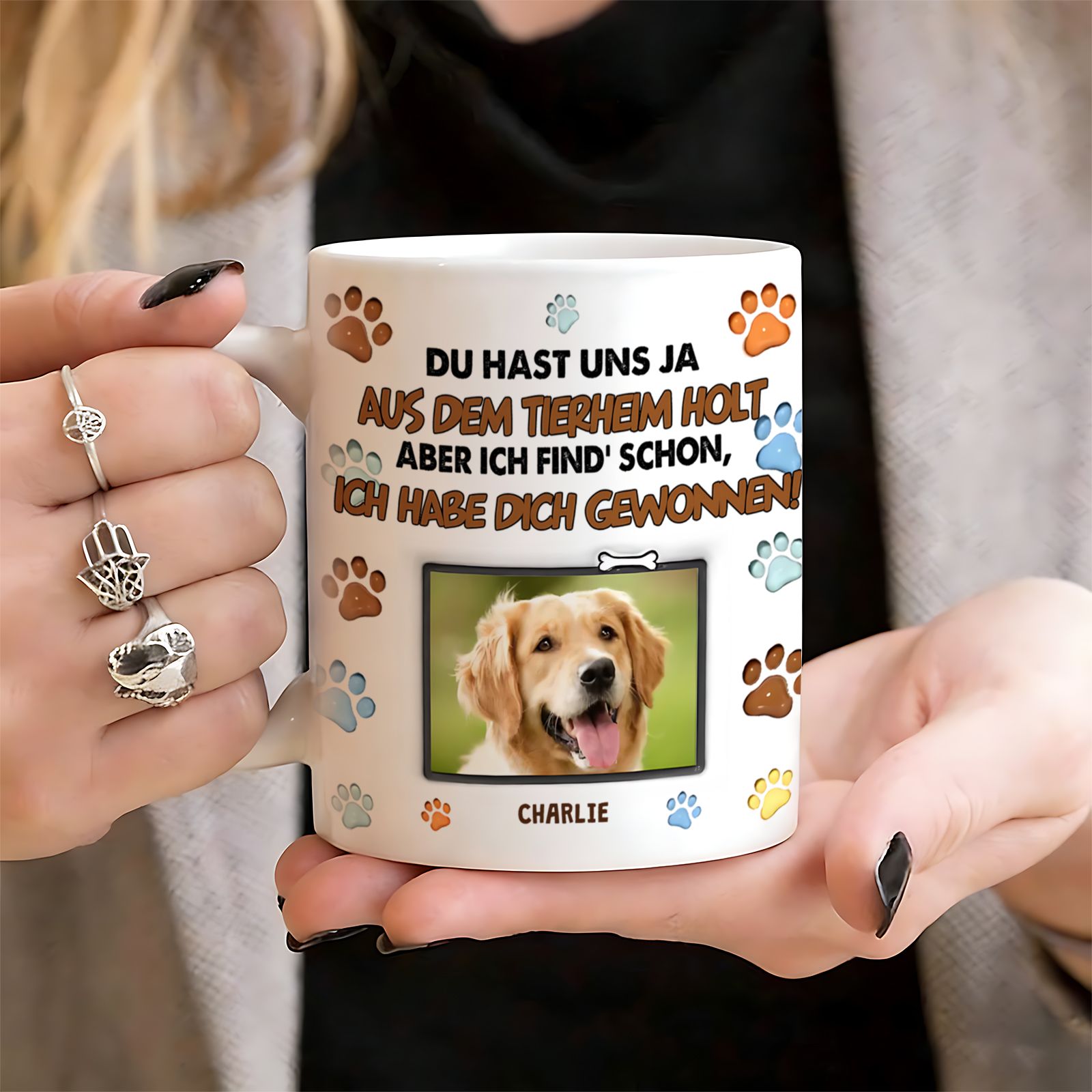 DIYTREE Personalisierte Haustier Foto Tasse mit Tierheim Spruch Hund & Katze Geschenk