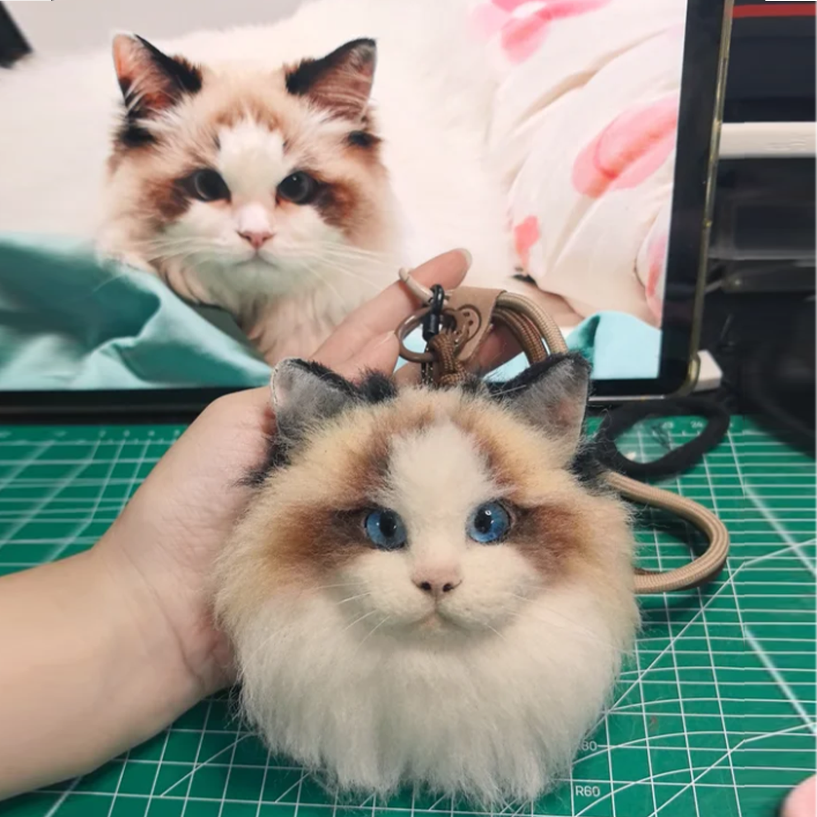 DIYTREE Individueller Wollfilz Haustierkopf Schlüsselanhänger - Handgemachtes Andenken für Katze