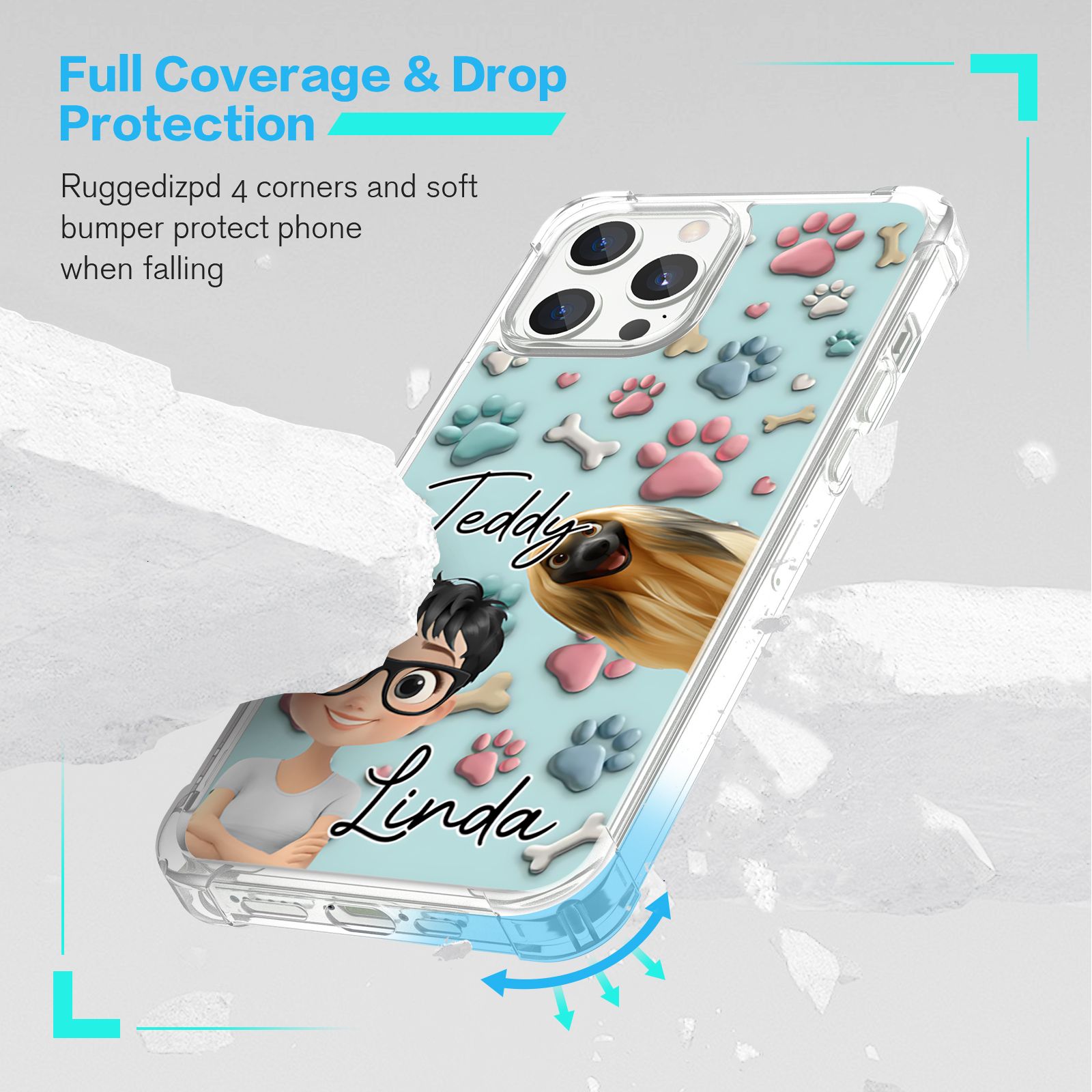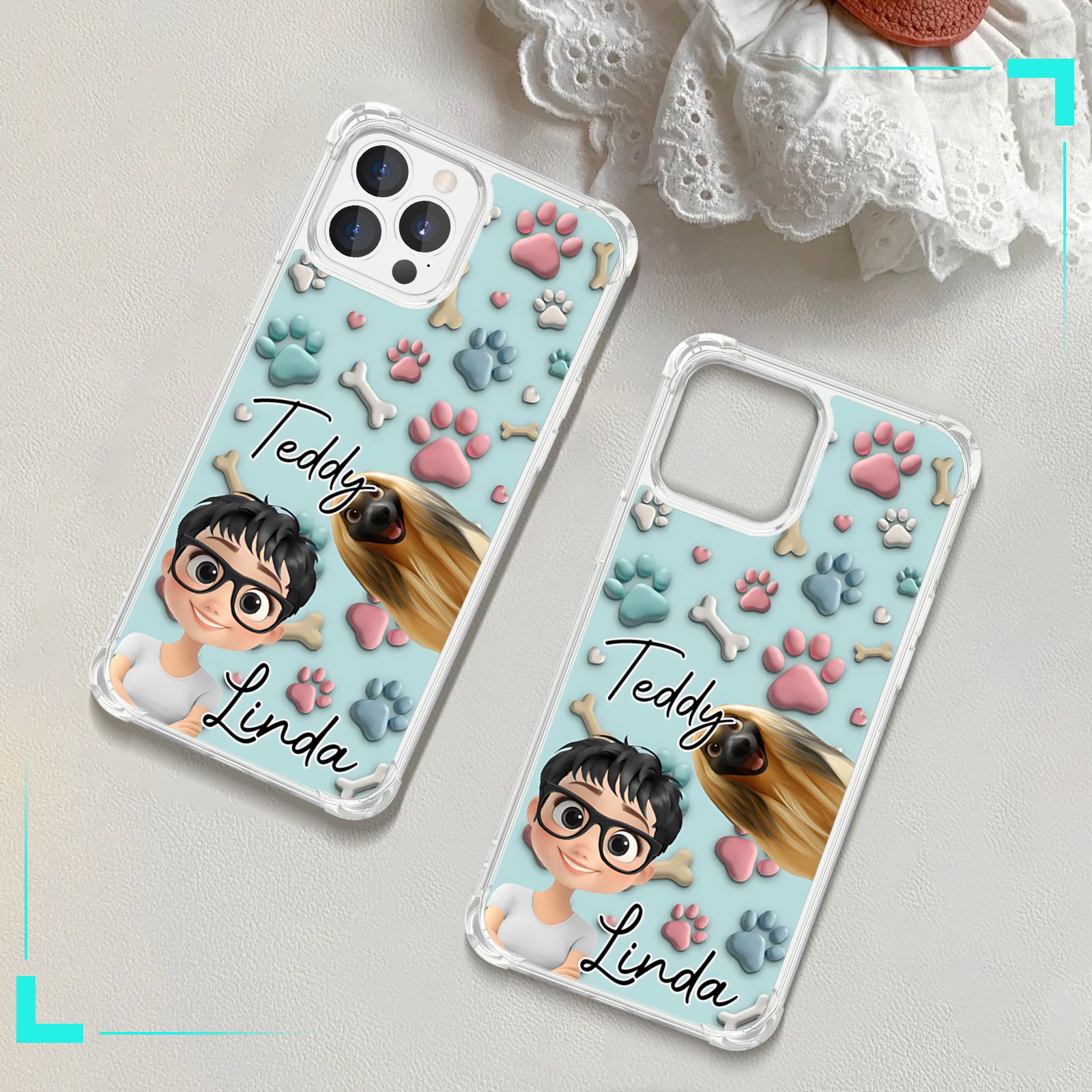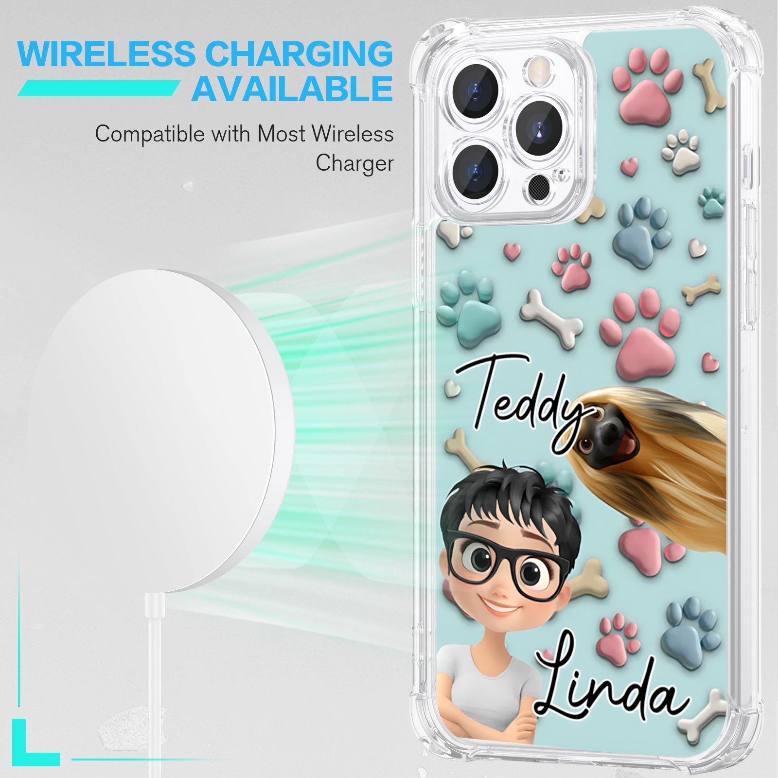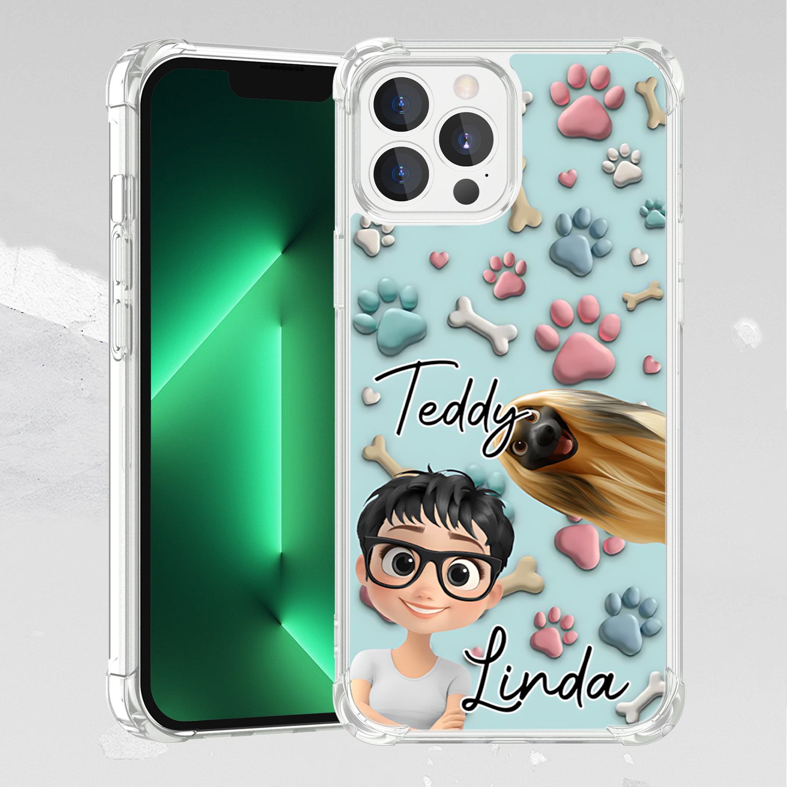 DIYTREE Niedliche Haustier-TPU-Handyhülle mit personalisiertem Namen für iPhone