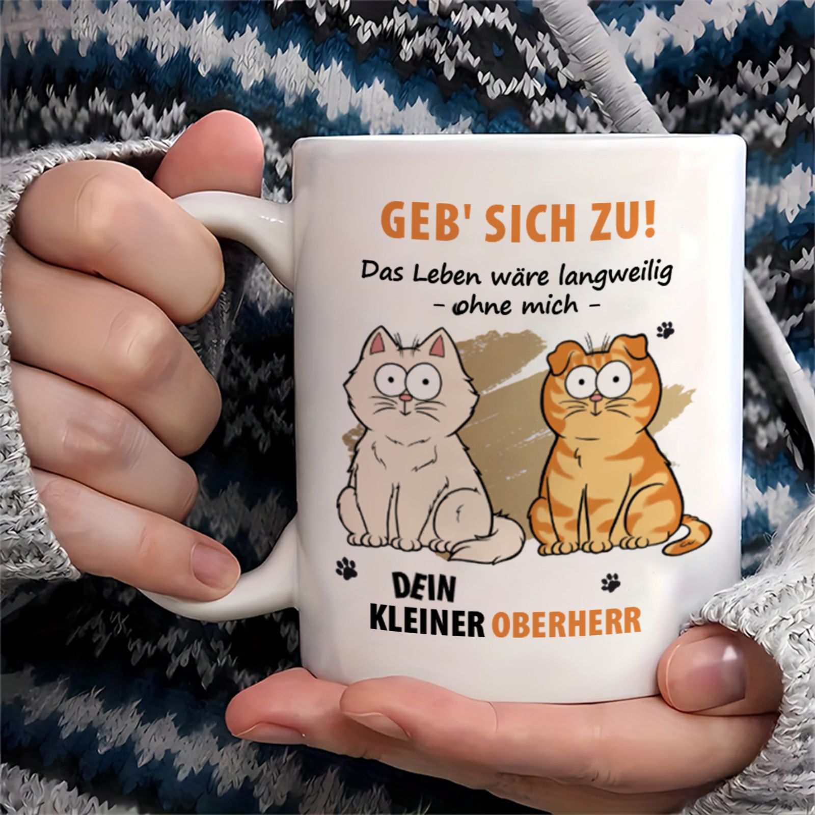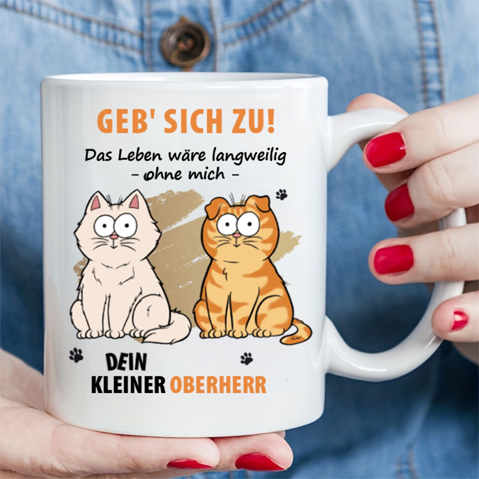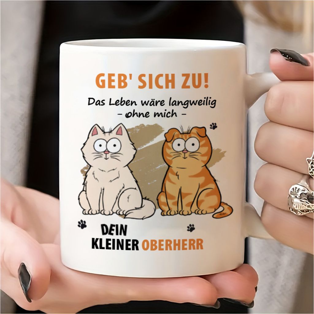 Ohne uns wäre das Leben langweilig – Personalisierte Tasse mit Katzenmotiv – Vatertag, Muttertag, Geschenk für Tierhalter, Tierliebhaber