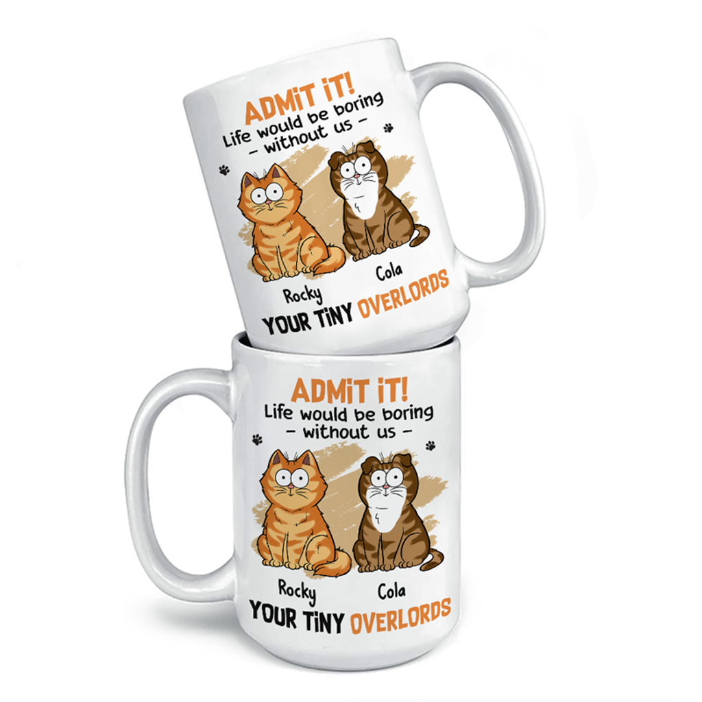Ohne uns wäre das Leben langweilig – Personalisierte Tasse mit Katzenmotiv – Vatertag, Muttertag, Geschenk für Tierhalter, Tierliebhaber