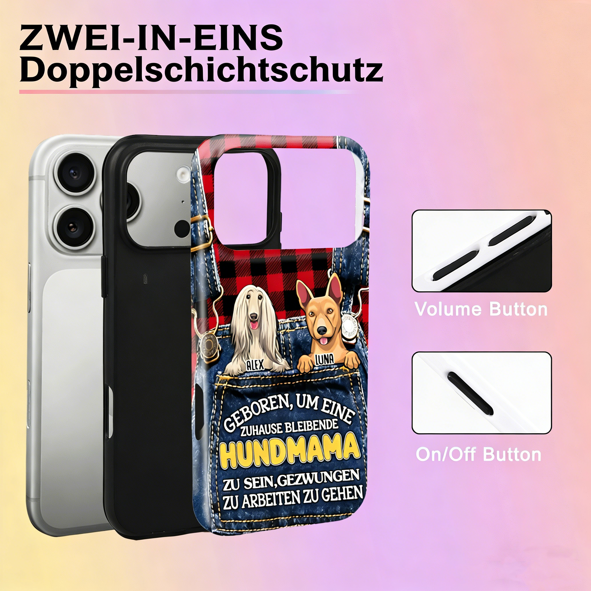 DIYTREE Personalisierte Hundemama Handyhülle – Individuell mit 1-4 Hunden & Namen, Denim-Design Doppelschicht-Schutz für iPhone