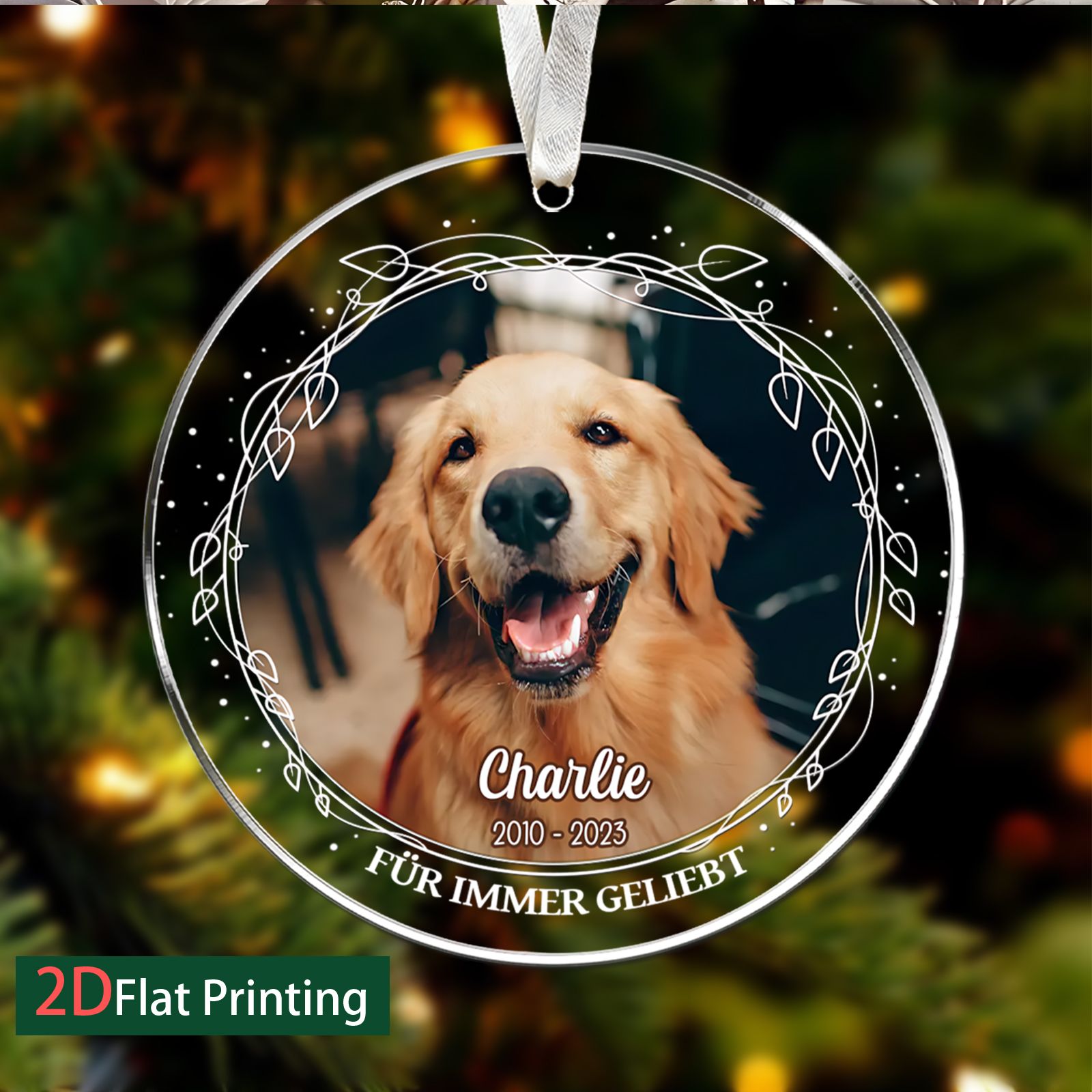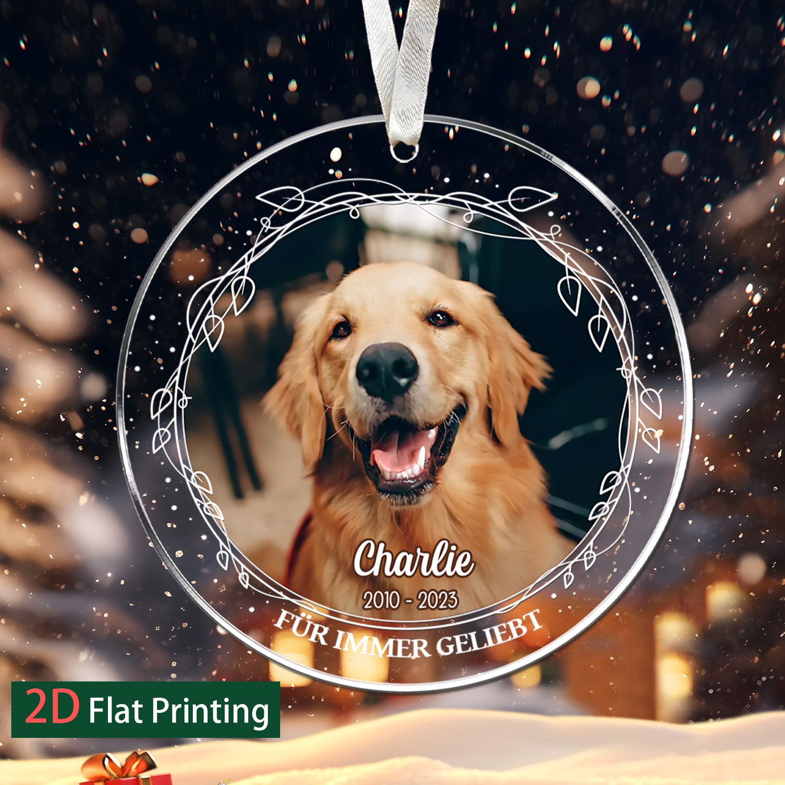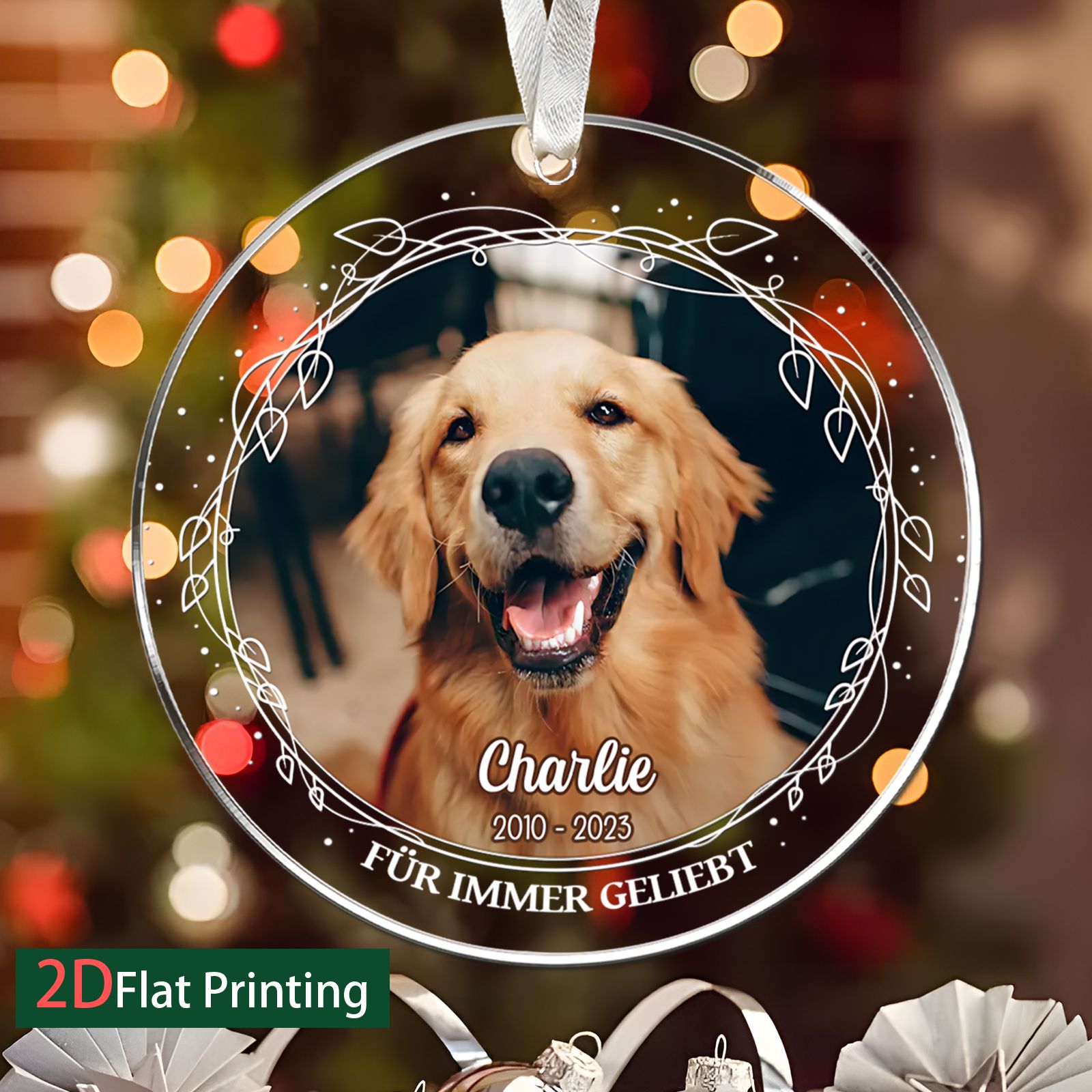 DIYTREE Personalisierte Haustier Gedenkornament – Individuell mit Foto, Namen & Jahren, Glasornament für Haustiergedenk