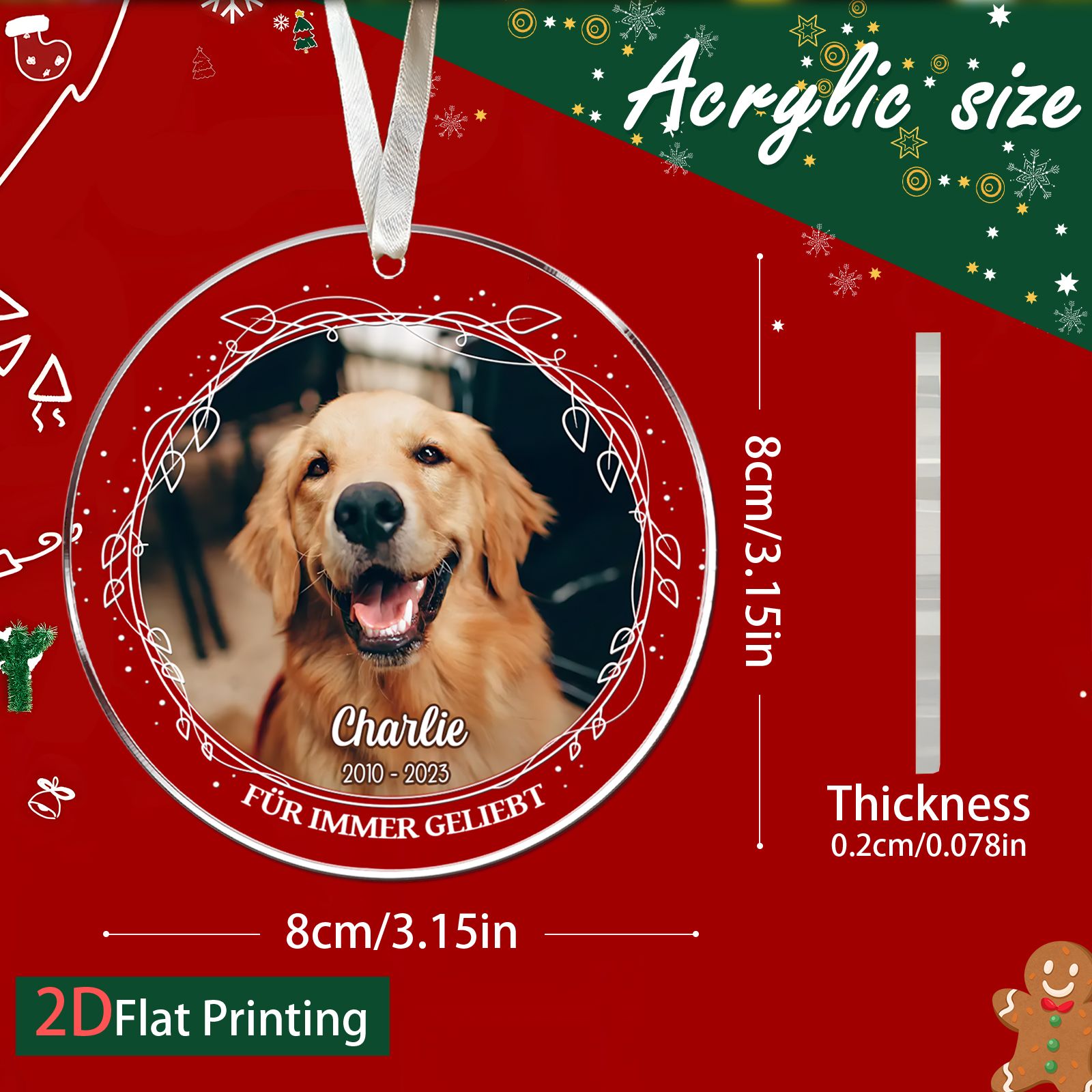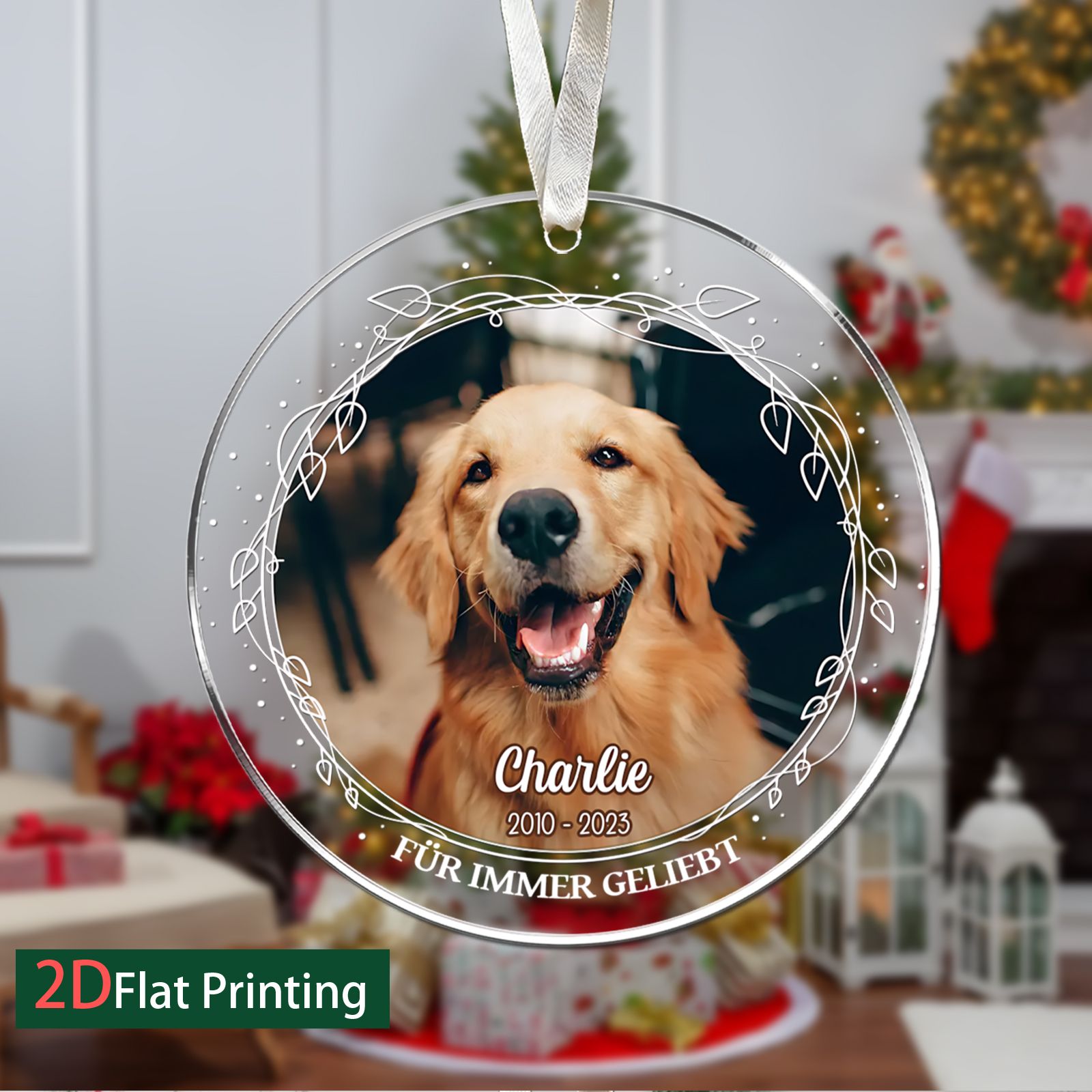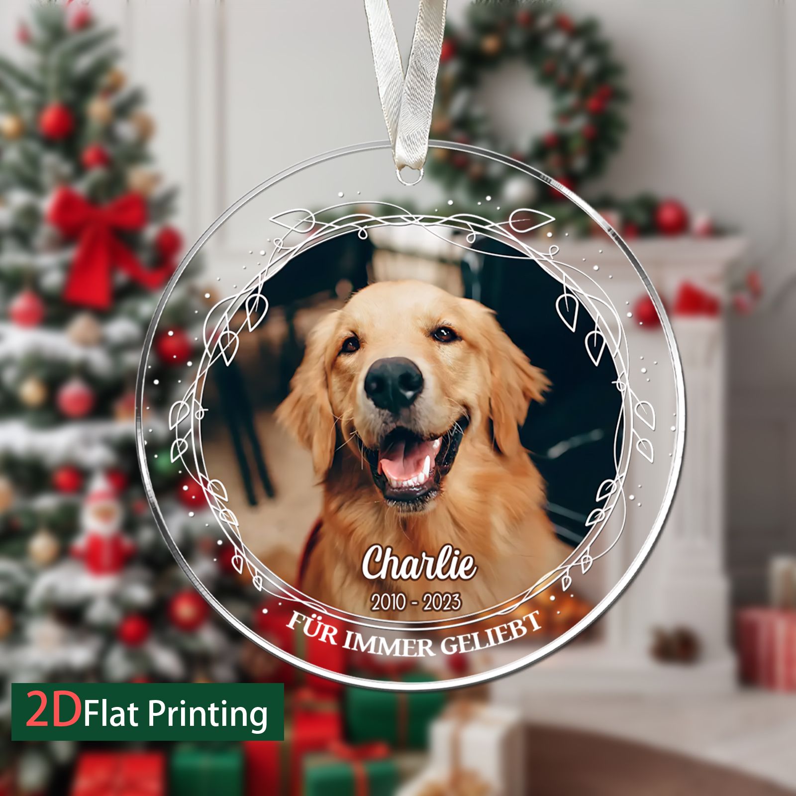 DIYTREE Personalisierte Haustier Gedenkornament – Individuell mit Foto, Namen & Jahren, Glasornament für Haustiergedenk
